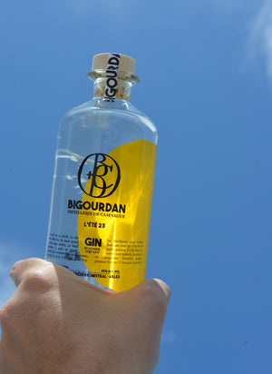À sa bouteille : soleil brûlant sur mer de gin cristalline.